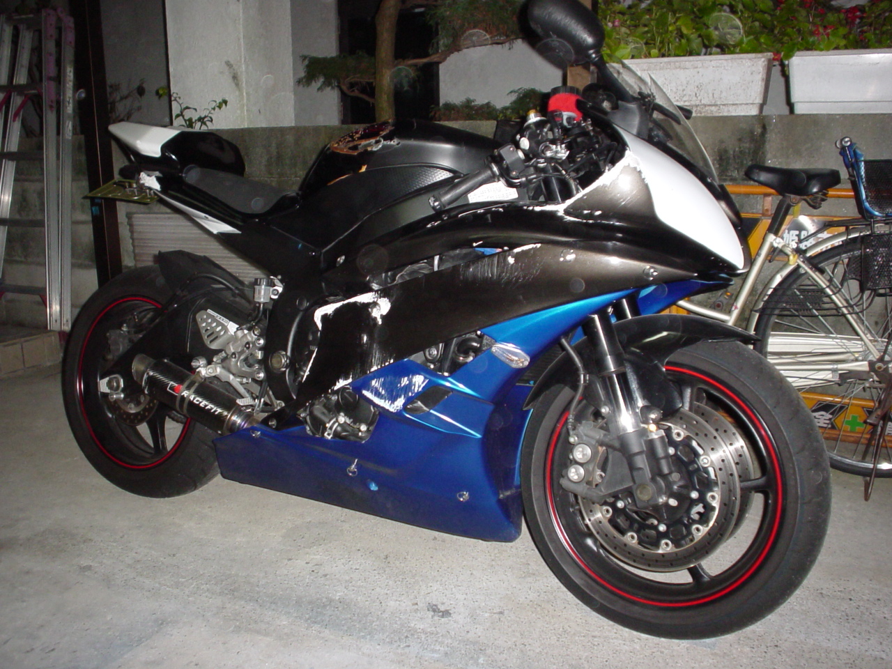 R6のエンジン暖気して、お先に帰ろうと「お疲れさ〜ん」と言って出発した矢先に・・・・・