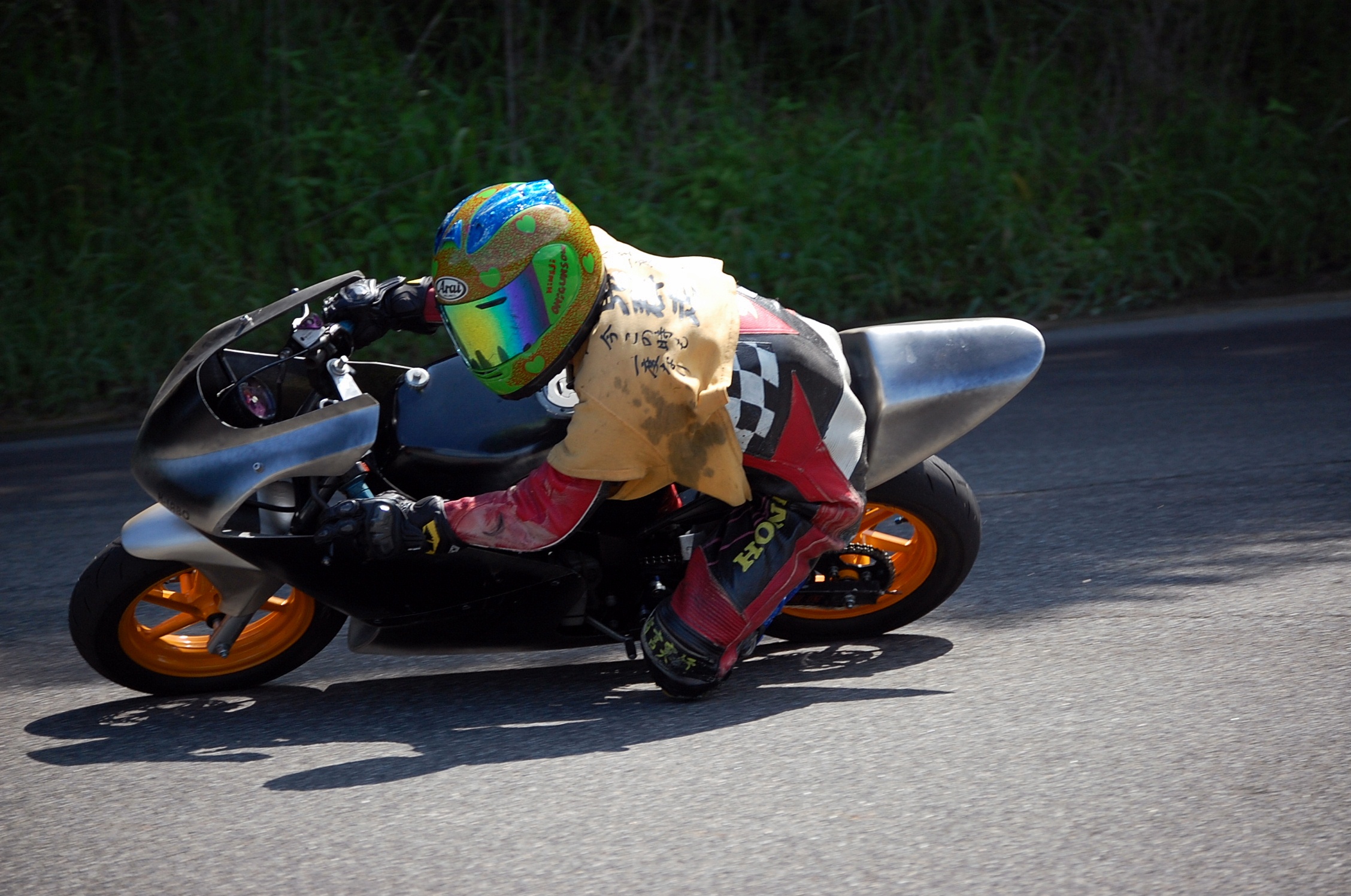 パイロン代わりのタイヤを配置して、2年ぶりにミニバイクで走りましたが・・・