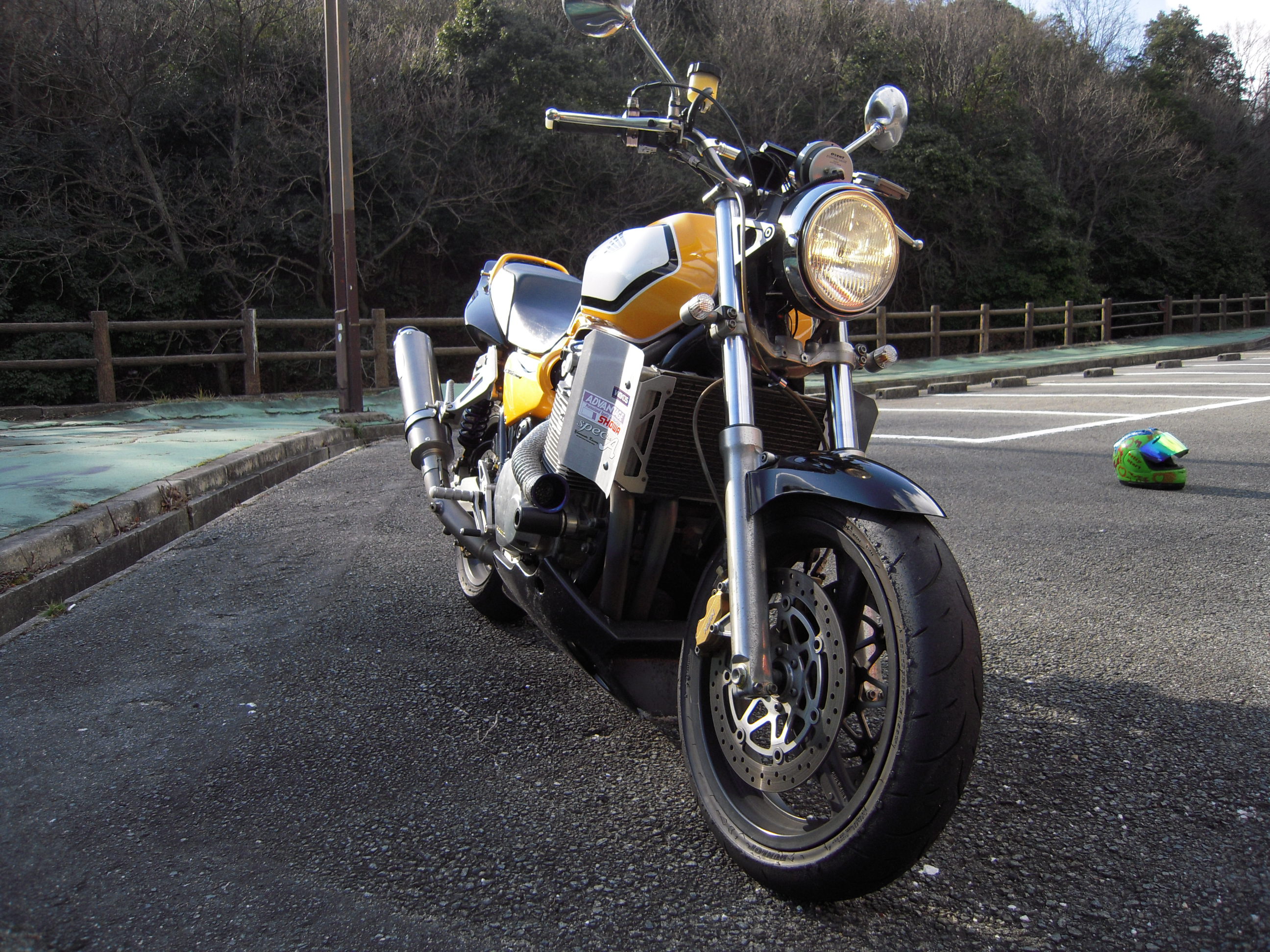 今は公道仕様で、ヘッドライトやらウインカーが付いていますが、