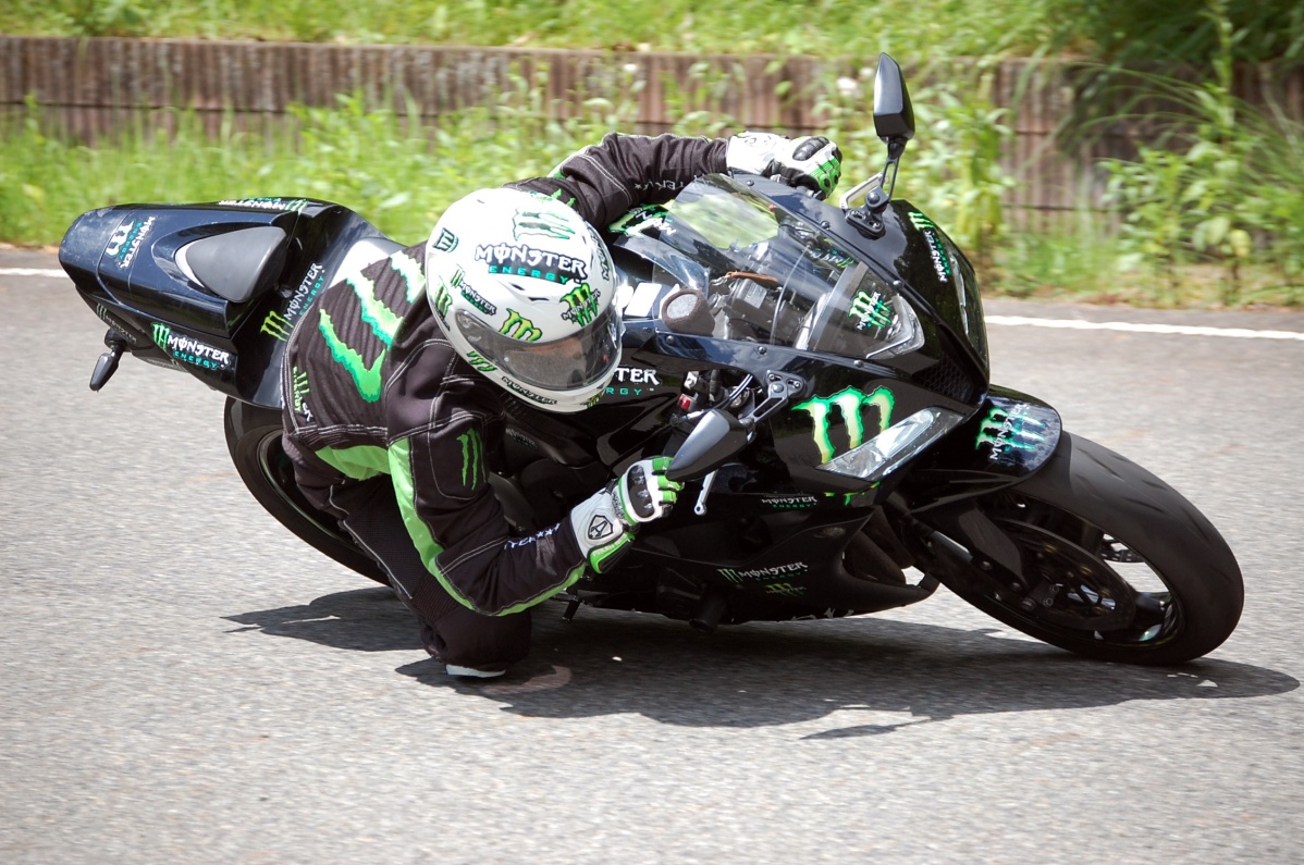 そういや、肘すりしまくってるMotoGPライダーのマルケスもハンドル広く取ってるみたいですね。