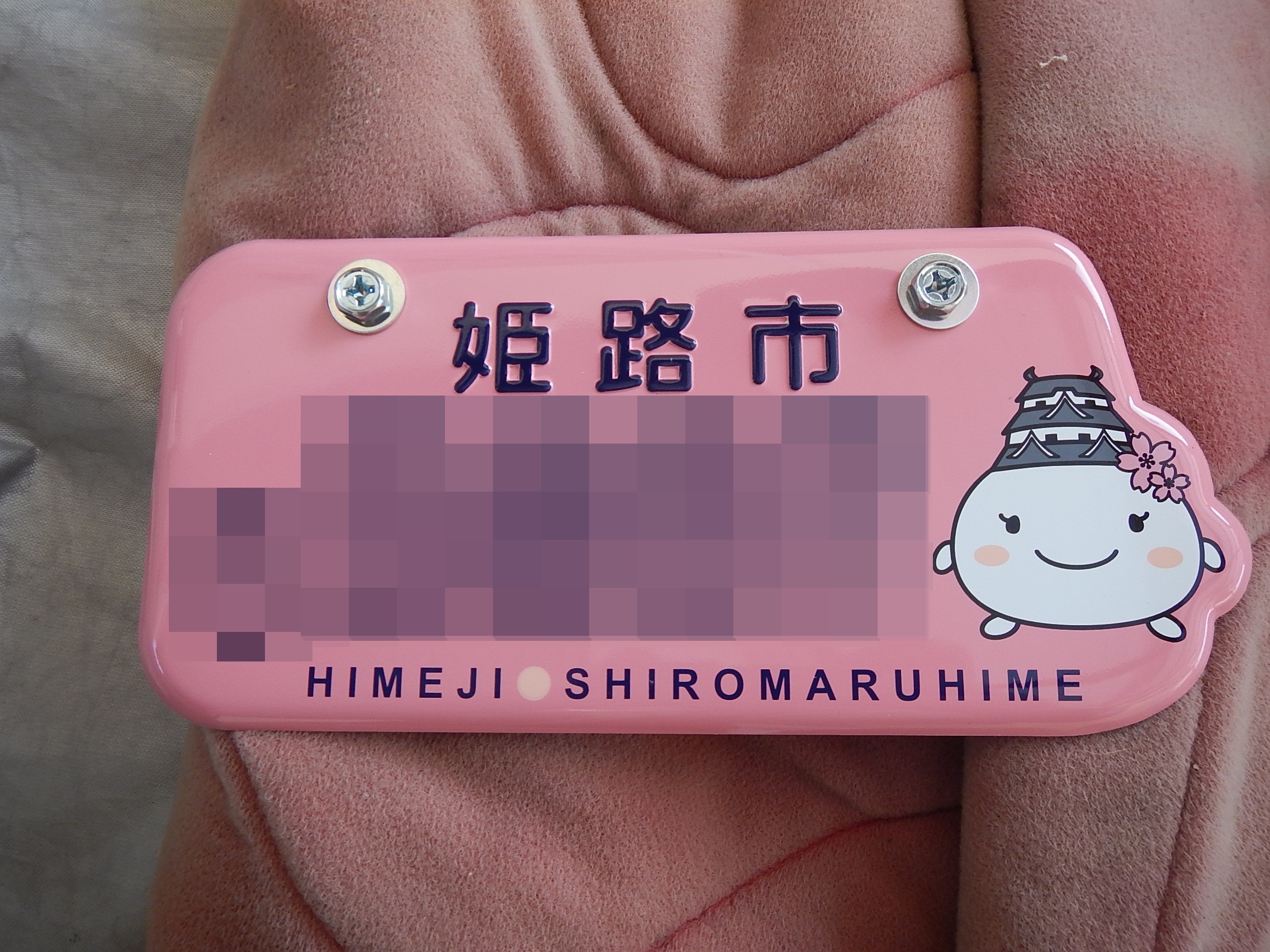 姫路の原付ナンバーはノーマルバージョンと、ゆるキャラのしろまる姫バージョンが選べます。