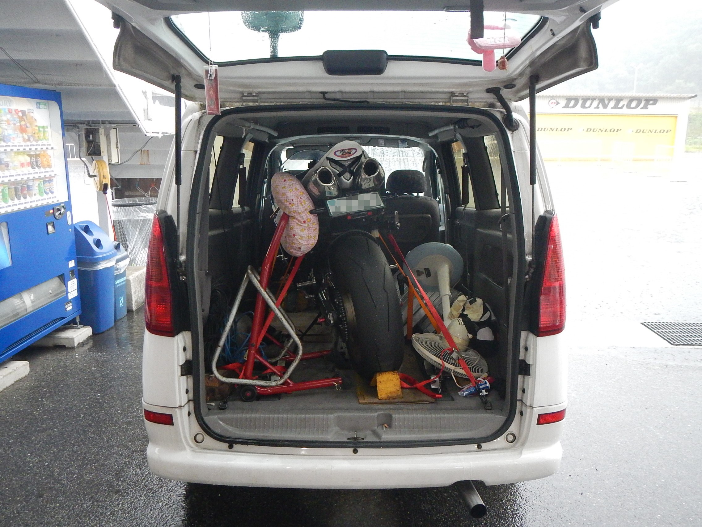 結構広くて、R1と工具スタンド類も余裕で積めてます。
