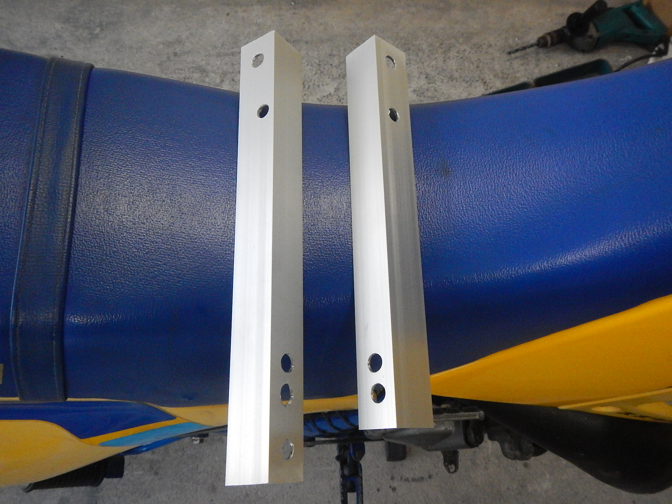 トップブリッジと三つ又の間を測ってアルミ材を適度な長さにカットし