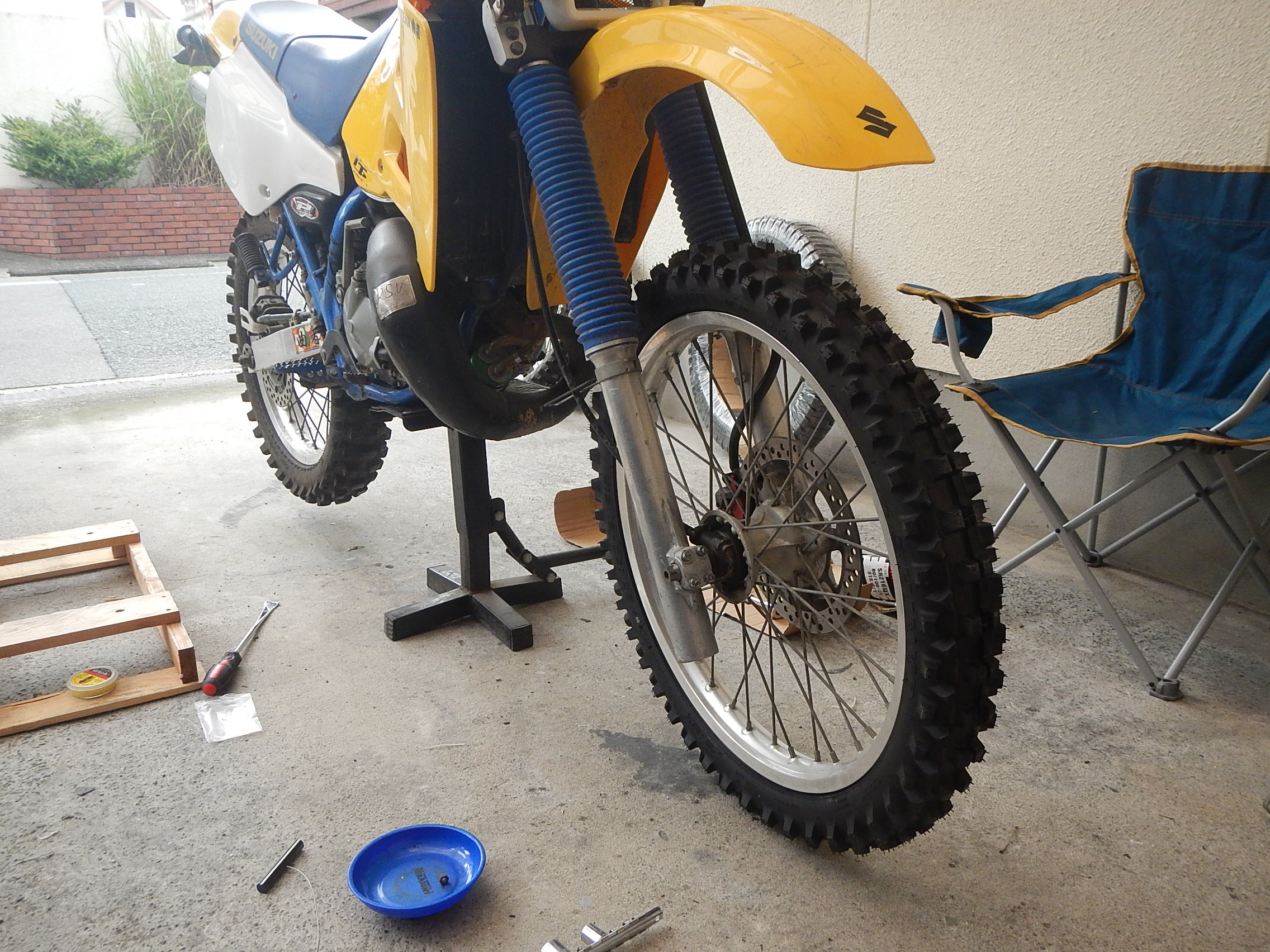 リアはスペアの125ホイールにトラタイヤのツーリスト試してみます☆
