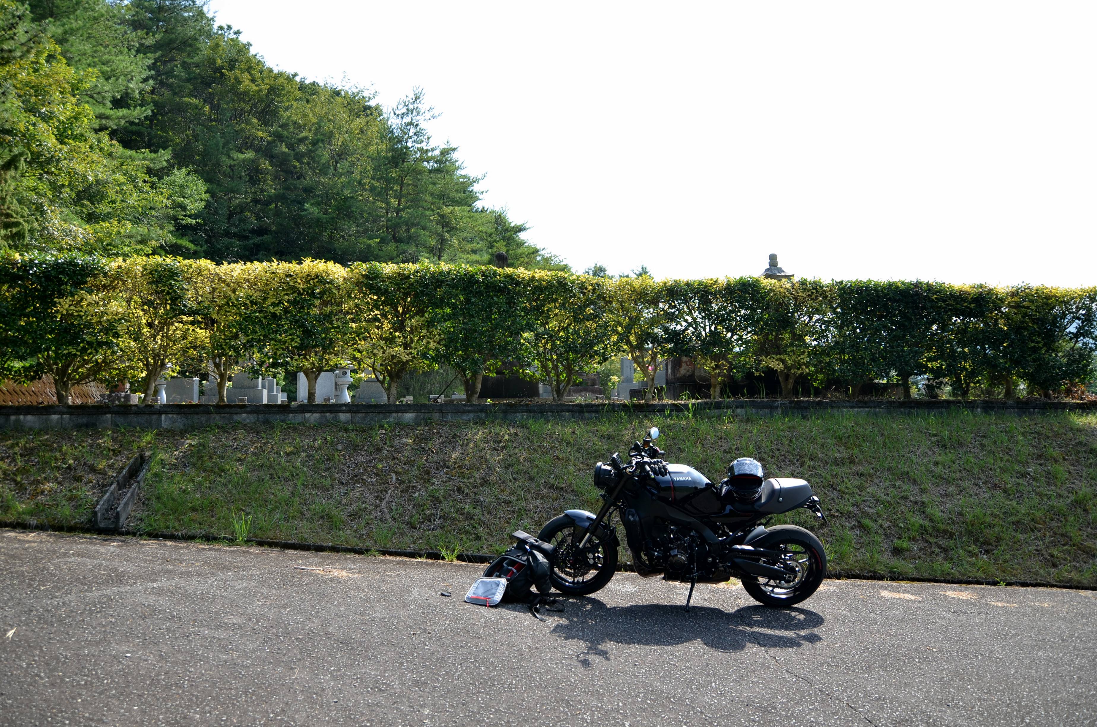 山肌ギリギリに寄せると、Fタイヤがアスファルトから落ちてしまい